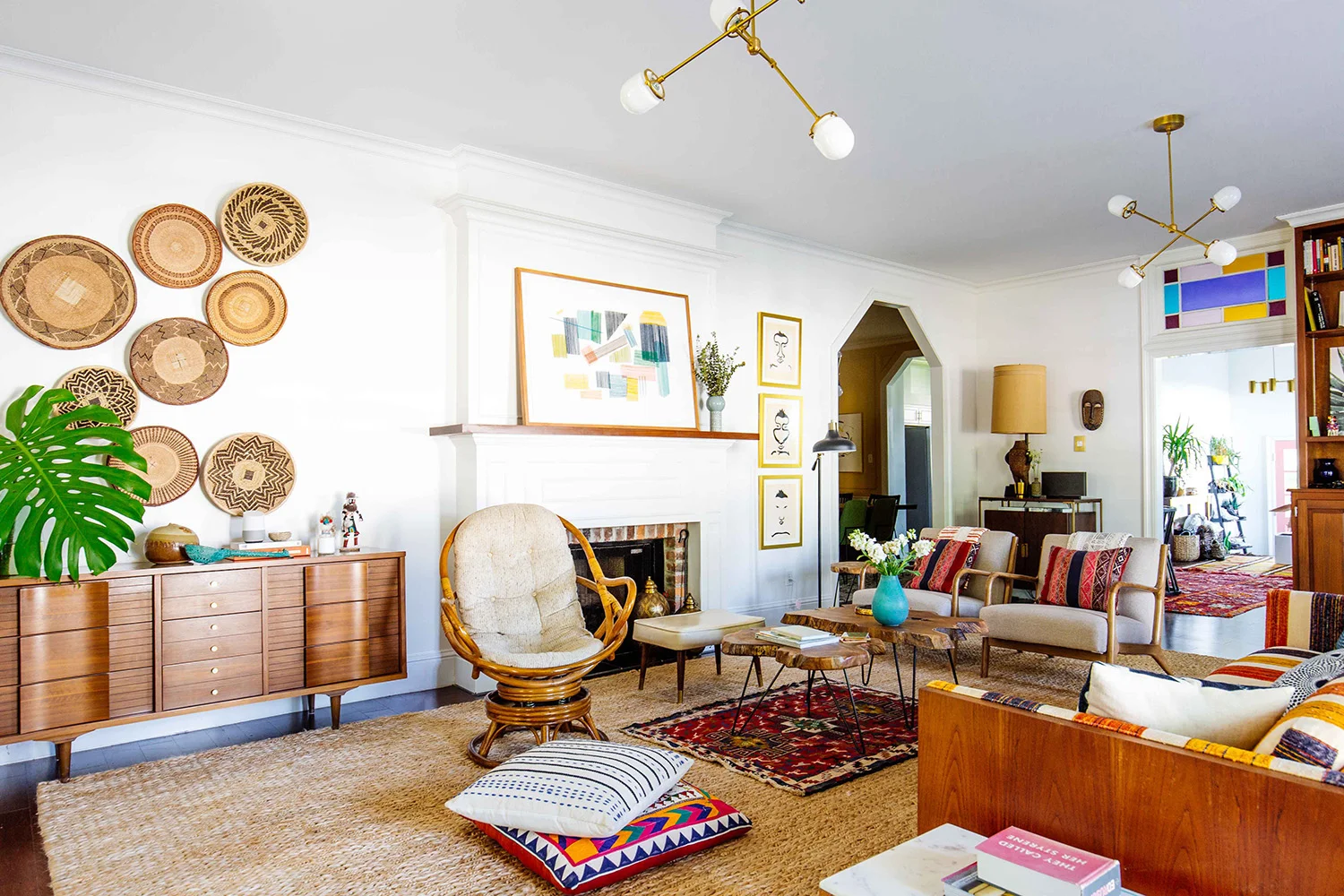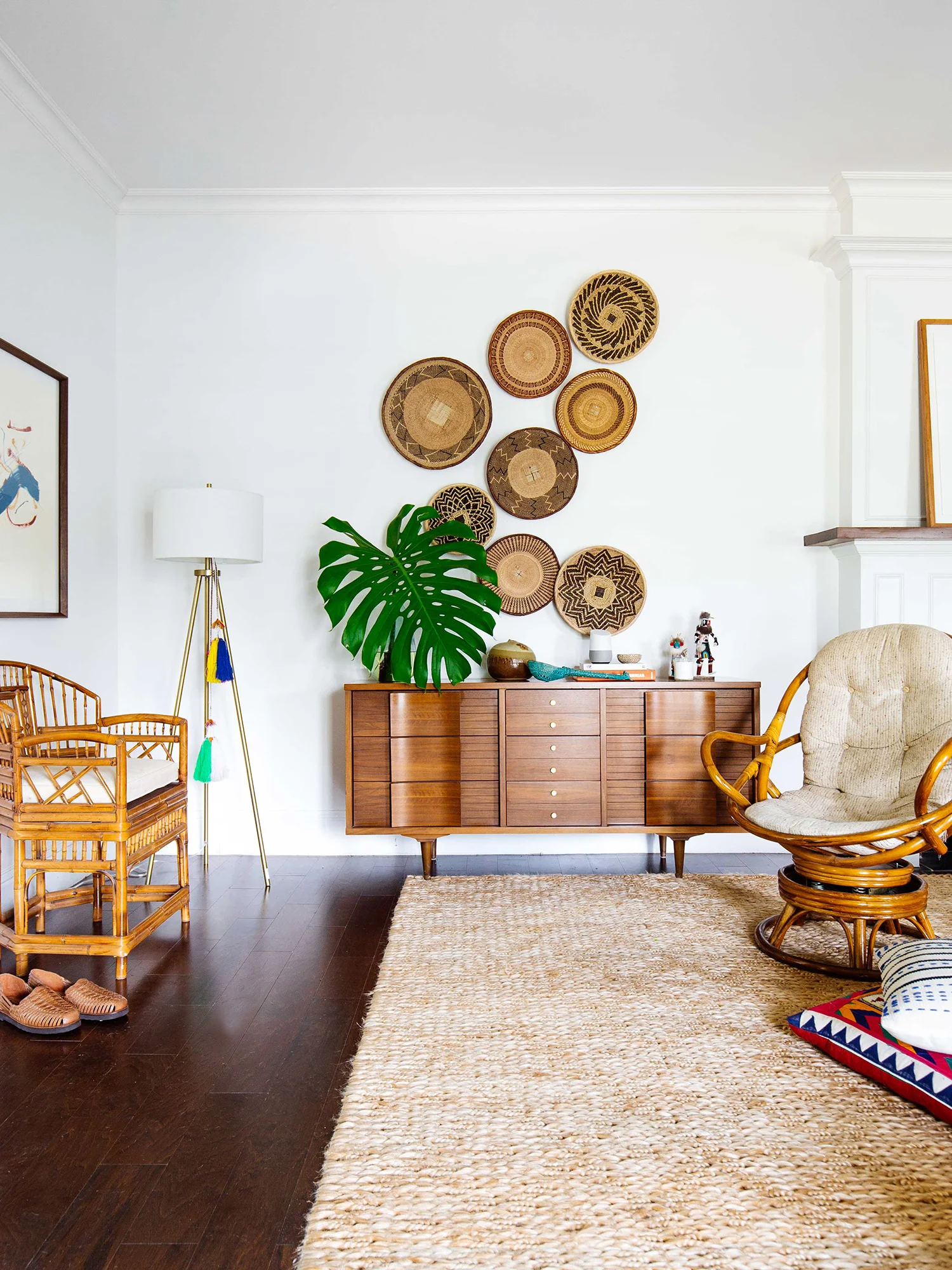 The sun is out and we're getting our tanning on (in our living room)! I've partnered with Google Home to show you all a little rearranging / refresh up in here. I felt like the previous rug was too small for the space so I put two 9x12 jute rugs together. Finding a rug this size would cost an arm and most definitely two legs but jute rugs are very affordable so it's a great option if you have a large space. The living room actually feels bigger and flows better now. Maybe I need another sofa, too? So what did I do with my other rug? You'll see next week! I'm calling this room tan town for now. There's so much wood, rattan, and natural textures. I’m not mad about it either.