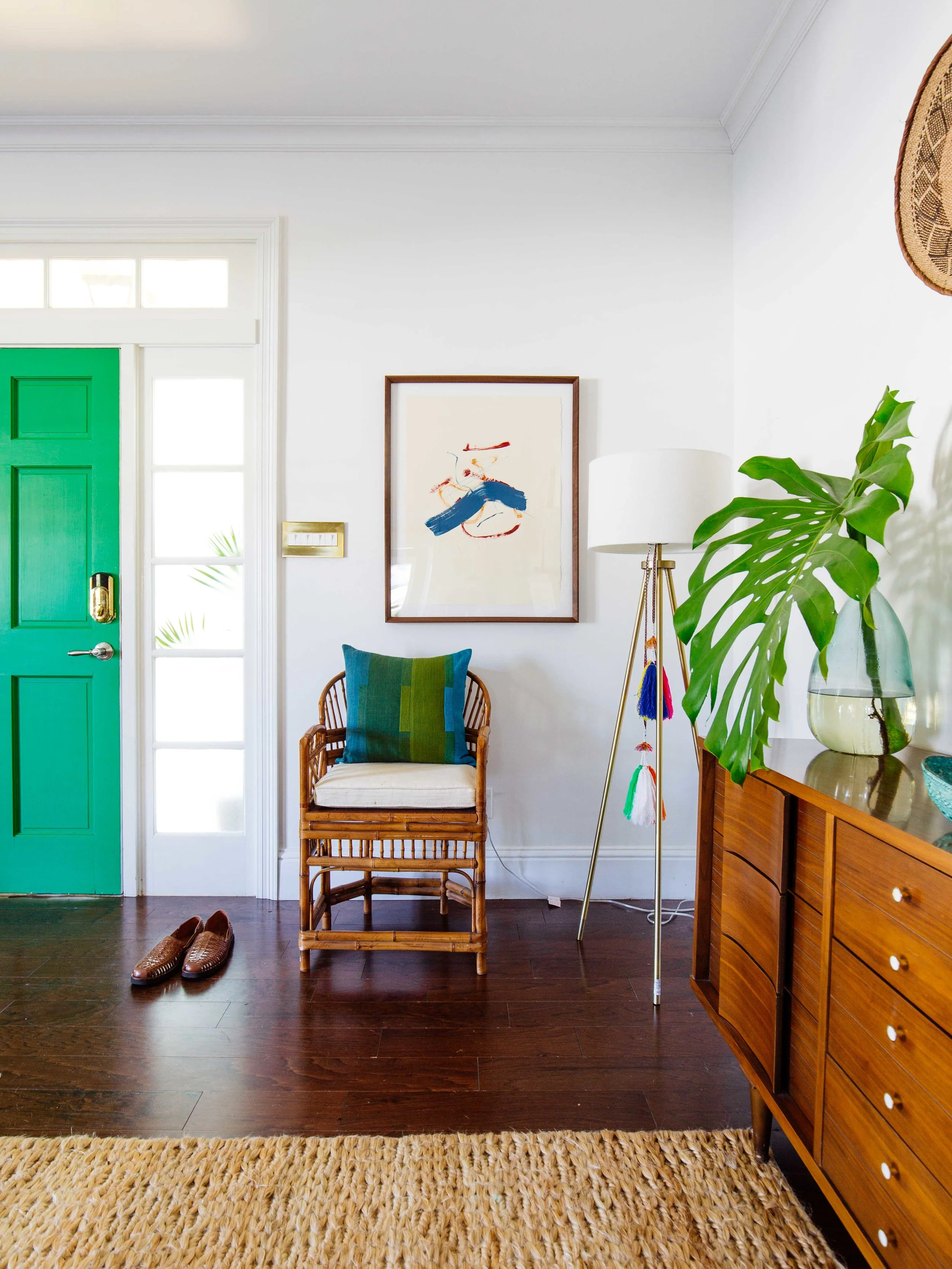 We got some new pillows in from Bolé Road Textiles to match the green door. Also, new thrifted rattan chairs! Art is by Leroy Miranda Jr.